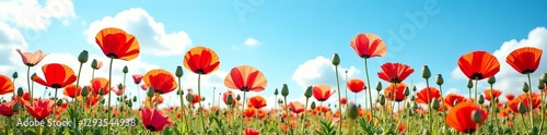 © Bamphen, Obraz premium Vibrant iceland poppies overlapping on blue sky backdrop, flowers, nature
