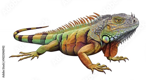 © Bidinstudio, Obraz premium Vibrant iguana illustration detailed reptile image exotic pet stock photo