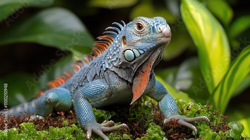 Obraz premium Vibrant iguana on lush greenery: natural habitat beauty