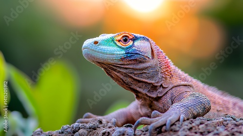 © Argan, Fototapeta premium Vibrant iguana portrait in natural light