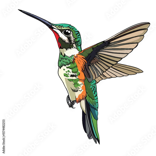 © Sabrina, Obraz premium Vibrant Illustration of a Hummingbird in Flight (7)