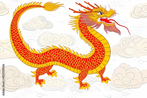 © possawat, Obraz premium Vibrant Illustration of a Majestic Dragon Surrounded by Clouds
