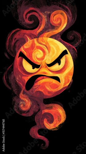 © Justlight, Naklejka premium Vibrant illustration of an expressive angry emoji featuring a swirling steam effect to convey anger or displeasure in social media posts and editorial content.