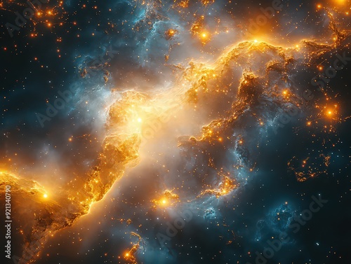 Naklejka premium vibrant image of a cosmic nebula with glowing stars and swirling gas clouds...