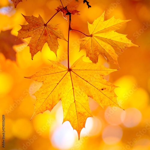 Obraz premium Vibrant image of three golden autumn maple leaves