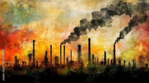 © WanCorp, Obraz premium Vibrant Industrial Landscape with Dramatic Textures