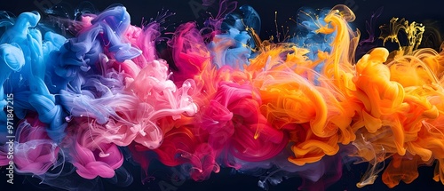 © Faustudio, Fototapeta premium Vibrant ink explodes in water.