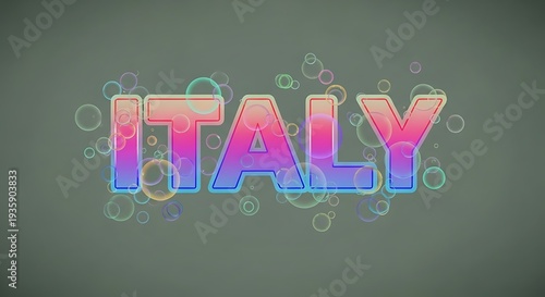 © MD. MAMUNAR RASHID, Fototapeta premium Vibrant italy text with holographic effect on dark background