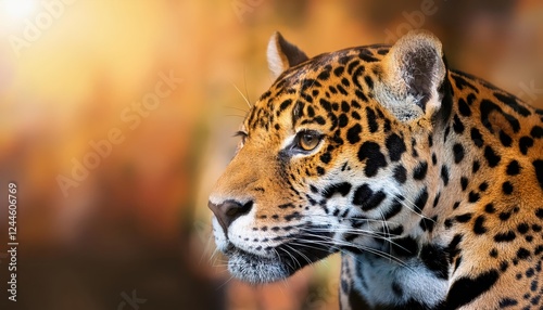 Obraz premium Vibrant Jaguar Striking Against a Bright, Blurred Background A Majestic...