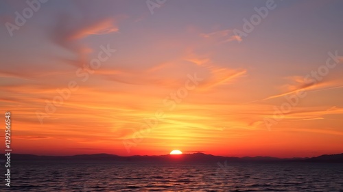 © BOXS, Obraz premium Vibrant Japanese Sunset Over Calm Waters and Gentle Breeze