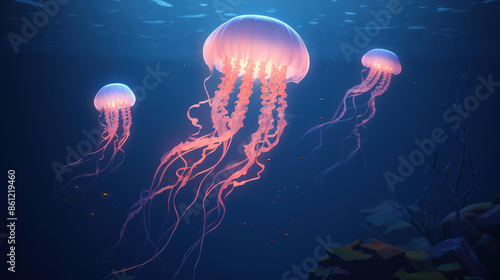 Fototapeta premium Vibrant jellyfish glowing in the ocean depths