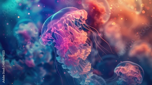 Obraz premium Vibrant Jellyfish in a Colorful Underwater World
