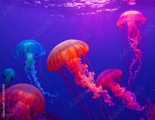 Fototapeta premium Vibrant jellyfish in deep ocean