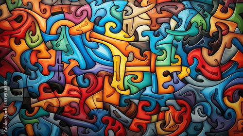 Fototapeta premium Vibrant jigsaw puzzle illustration featuring intricate textures and patterns...
