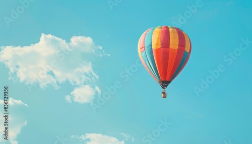 Fototapeta premium Vibrant Journey: Hot Air Ballooning in the Blue Sky -ar 7:4