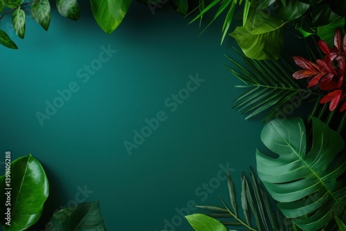 © pengzphoto, Naklejka premium Vibrant jungle-inspired artwork featuring bold botanical elements nature scene graphic design lush environment aerial view creative concept
