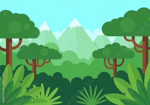 Obraz premium Vibrant jungle landscape with lush greenery and majestic mountains