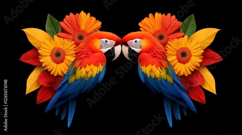 © KN Studio, Fototapeta premium Vibrant Kaleidoscope of Tropical Colors with Macaws and Flowers