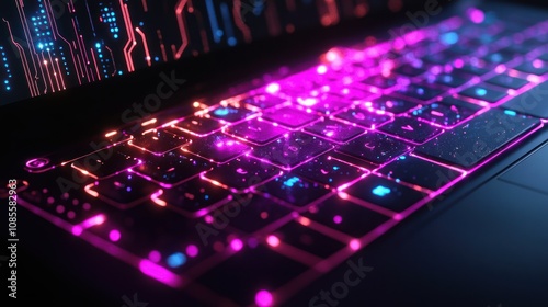 © zulie, Obraz premium Vibrant keyboard with digital circuit background.