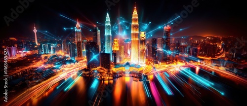© Mustofa, Obraz premium Vibrant Kuala Lumpur Nightscape: A Symphony of Lights and Urban Energy