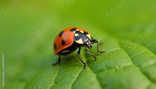Obraz premium Vibrant Ladybug on a Lush Green Leaf