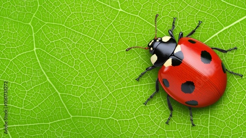Fototapeta premium Vibrant Ladybug on Fresh Green Leaf