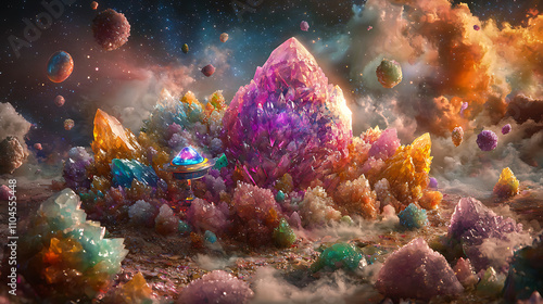 Fototapeta premium vibrant landscape featuring colorful crystals and planets, showcasing...