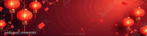 © Kathy, Obraz premium Vibrant lanterns & red envelopes, festive decorations , vector, calligraphy, joyful