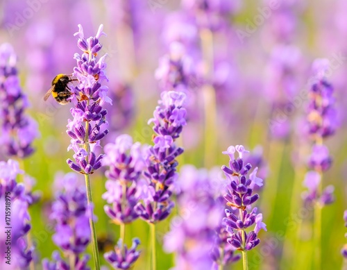 © Drona, Obraz premium Vibrant lavender field with a bee (1)