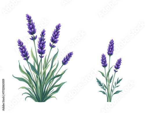 Fototapeta premium Vibrant Lavender Floral Illustration with Greenery for Decoration