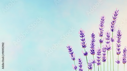 Naklejka premium Vibrant lavender flowers against a soft blue background, creating a serene...