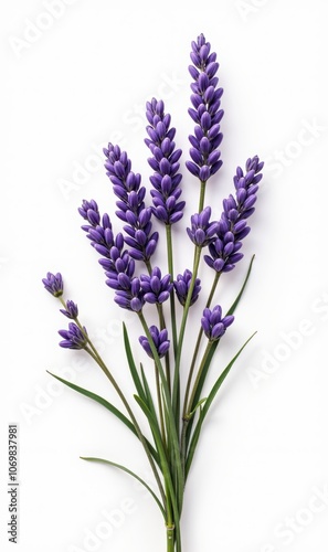 Naklejka premium Vibrant lavender flowers arranged elegantly, perfect for designs related to wellness, beauty, and nature.