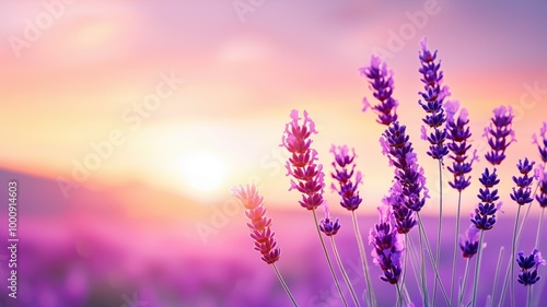 Fototapeta premium Vibrant lavender flowers basking in the warm glow of sunset, creating a...