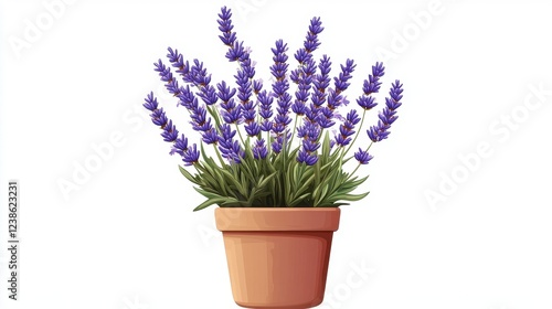 Fototapeta premium Vibrant Lavender Plant in Terracotta Pot with Purple Blossoms