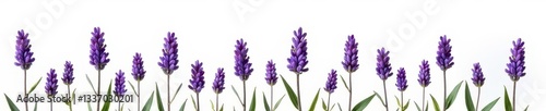 Naklejka premium Vibrant lavender sprigs, individually isolated against a stark white backdrop , purple, rustic, summer
