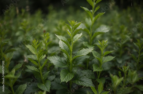 Obraz premium Vibrant Leafy Green Plants Thriving in Field Undergrowth ai generated