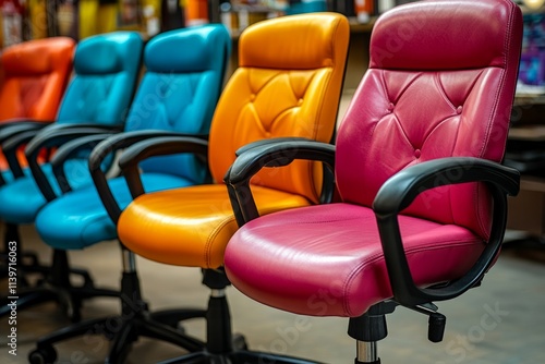 © Gerard, Obraz premium Vibrant leather office chairs in a contemporary showroom.
