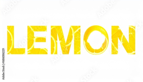 Fototapeta premium Vibrant lemon slices form the word LEMON, offering a refreshing burst of...