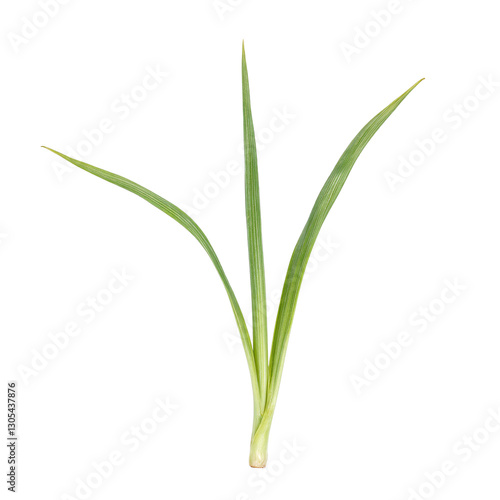 Naklejka premium Vibrant lemongrass leaf in pale green with long thin form isolated on white Perfect for concepts of freshness and natural ingredients