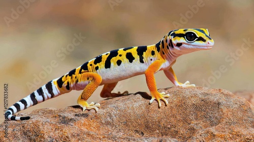 Obraz premium Vibrant leopard gecko on rock.
