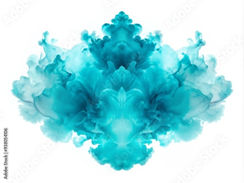 © Four888, Naklejka premium Vibrant light blue ink blot, irregularly shaped with subtle texture, isolated on a pristine white background, capturing the beauty of accidental art.