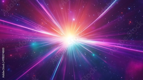 Naklejka premium Vibrant light rays burst from bright core in cosmic space.