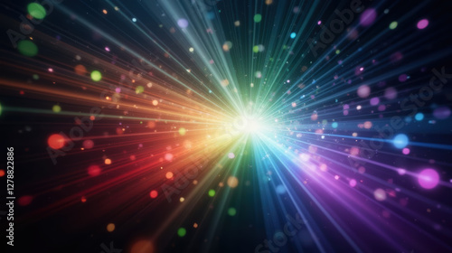 Naklejka premium Vibrant light rays radiate in colorful burst, creating dynamic atmosphere