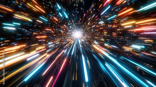 © Hasriana, Fototapeta premium Vibrant light streaks converge in a dynamic, hypnotic tunnel effect