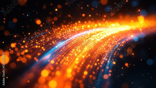 Obraz premium Vibrant Light Trails and Sparkling Particles Creating a Dynamic Flow with...