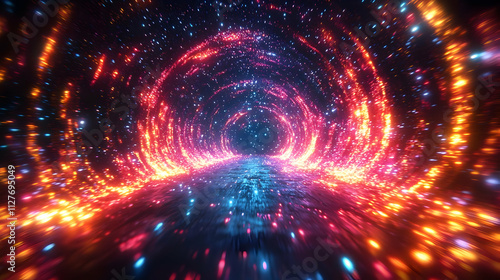 Obraz premium Vibrant Light Tunnel: Cosmic Rays Dance Through a Starry Vortex