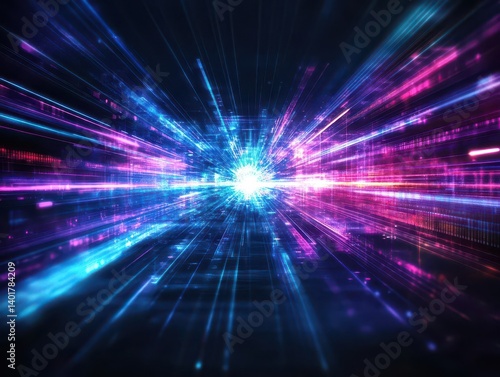 Fototapeta premium Vibrant Light Tunnel Glowing in Multicolored Hues Against a Deep Black...