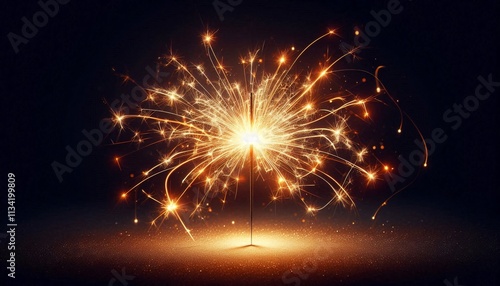 © Giuseppe Cammino, Naklejka premium Vibrant lighting sparkler creating enchanting trails of light against a dark background, perfect for celebration events