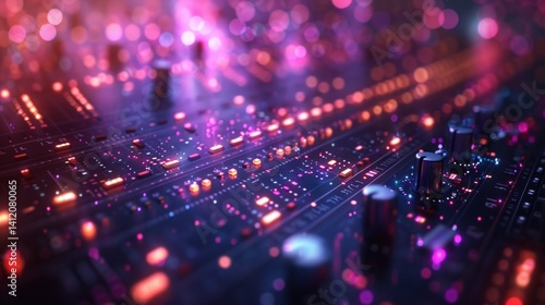 Fototapeta premium Vibrant lights and sound waves dancing on a creative electronic music mixer...