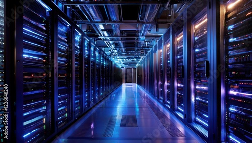 Fototapeta premium Vibrant lights illuminating server arrays in a next-gen data facility,...